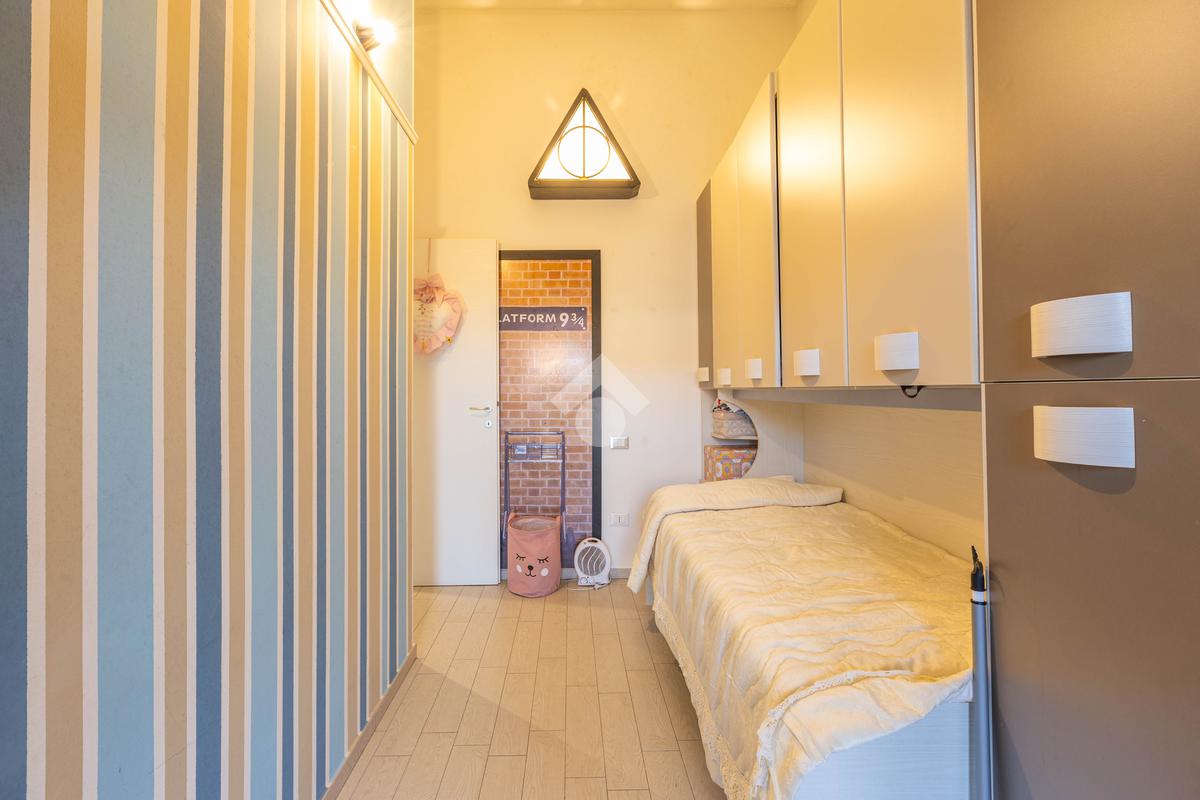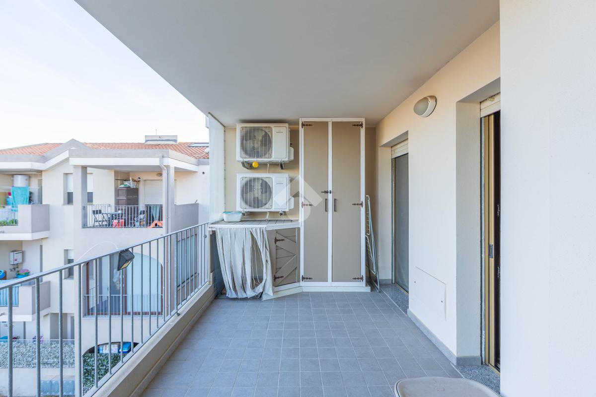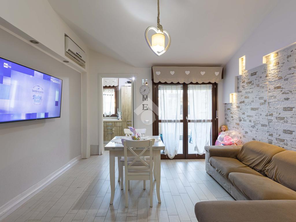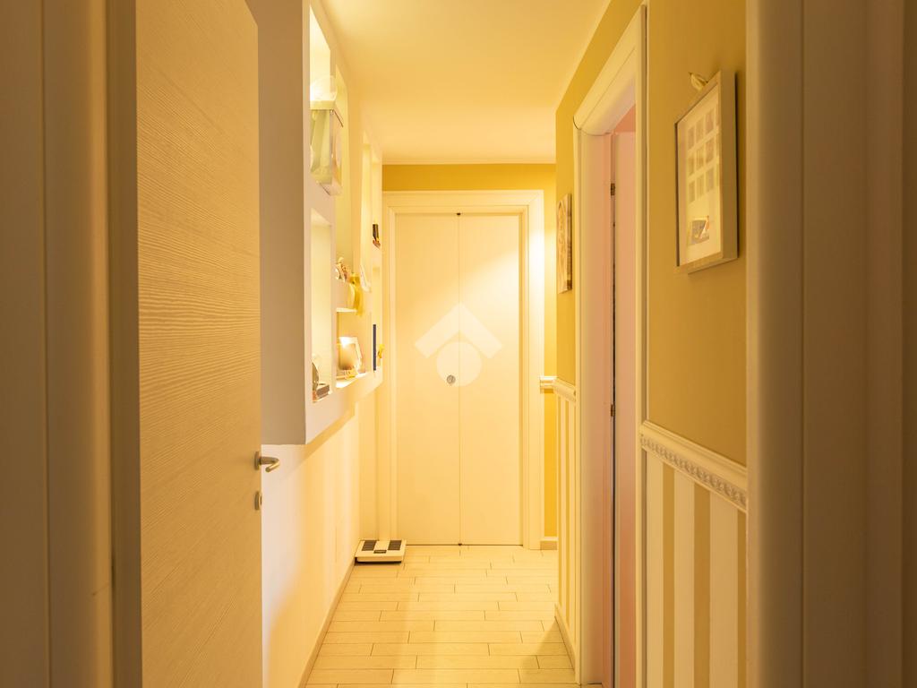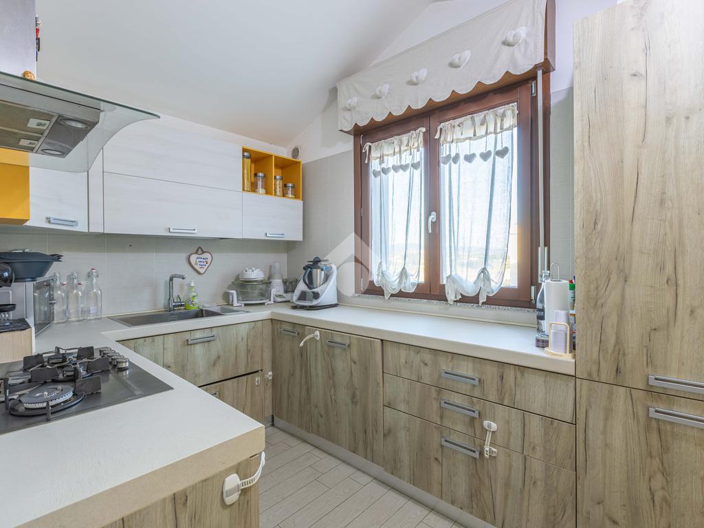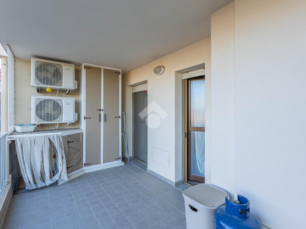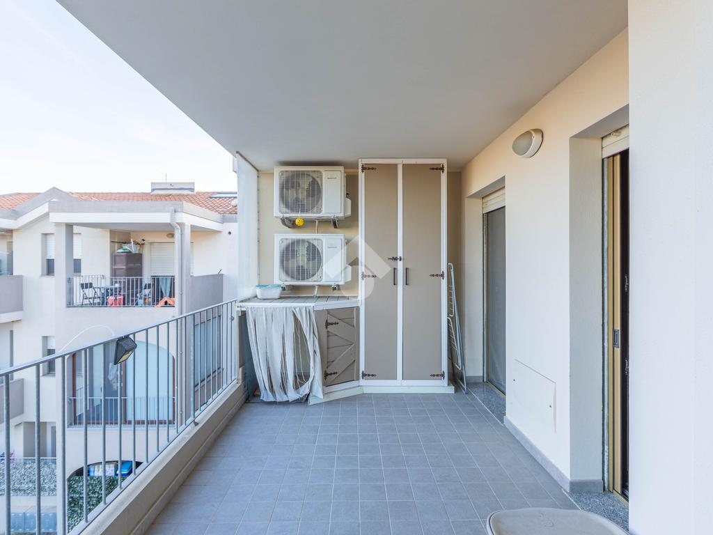 Proponiamo in esclusiva un trivano costruito nel 2015 sito al secondo e ultimo piano con ascensore di una piccola palazzina inserita all'interno di un residence esclusivo. E' possibile accedere al suo interno grazie all'ingresso pedonale e carrabile. Le scale e l'ascensore ci conducono al portoncino d'ingresso, di accesso ad un ampio soggiorno di affaccio ad una comoda veranda coperta, una cucina abitabile e ad un funzionale soppalco. Il disimpegno ci conduce al bagno con doccia alle due camere da letto, luminose e fresche grazie alla luce e all'aria che arriva dall'ampia veranda a cui accedono e ad un funzionale ripostiglio. Le finiture sono ottime: infissi in doppio vetro con taglio termico, zanzariere, portoncino blindato, impianto di condizionamento e riscaldamento nel soggiorno e nelle camere, predisposizioni per l'impianto solorare termico per la produzione di acqua calda sanitaria e per l'impianto fotovoltaico. E' inoltre presente il certificato di agibilità. Il posto auto coperto e la cantina siti al piano seminterrato concludono al meglio la nostra proposta. L'immobile è attualmente locato con un regolare contratto fino a Marzo del 2027 e viene venduto arredato.