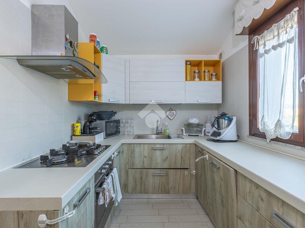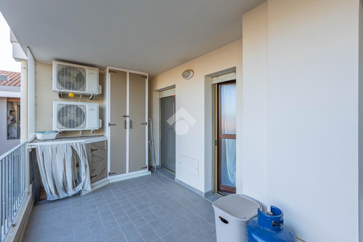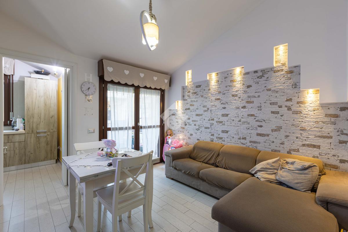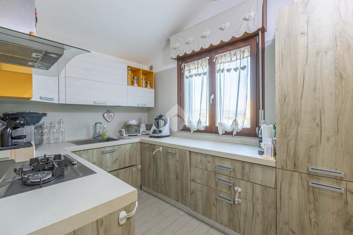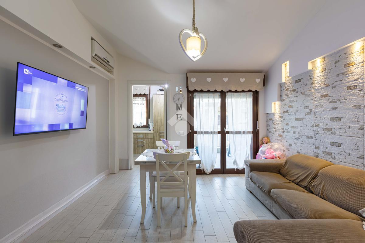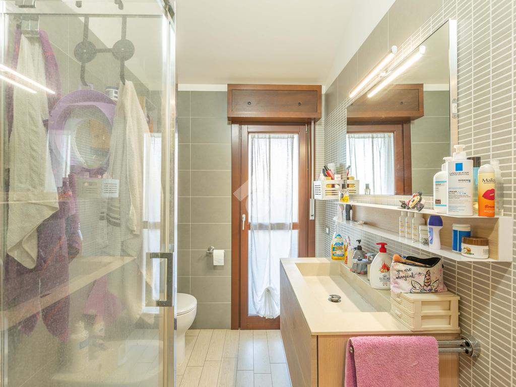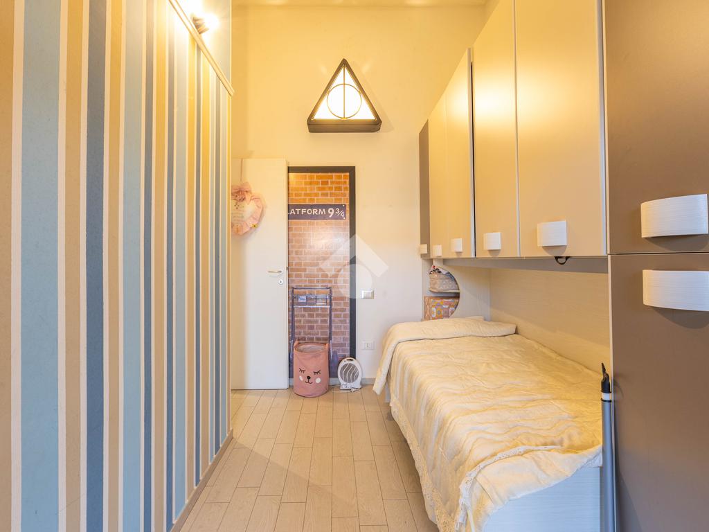 Proponiamo in esclusiva un trivano costruito nel 2015 sito al secondo e ultimo piano con ascensore di una piccola palazzina inserita all'interno di un residence esclusivo. E' possibile accedere al suo interno grazie all'ingresso pedonale e carrabile. Le scale e l'ascensore ci conducono al portoncino d'ingresso, di accesso ad un ampio soggiorno di affaccio ad una comoda veranda coperta, una cucina abitabile e ad un funzionale soppalco. Il disimpegno ci conduce al bagno con doccia alle due camere da letto, luminose e fresche grazie alla luce e all'aria che arriva dall'ampia veranda a cui accedono e ad un funzionale ripostiglio. Le finiture sono ottime: infissi in doppio vetro con taglio termico, zanzariere, portoncino blindato, impianto di condizionamento e riscaldamento nel soggiorno e nelle camere, predisposizioni per l'impianto solorare termico per la produzione di acqua calda sanitaria e per l'impianto fotovoltaico. E' inoltre presente il certificato di agibilità. Il posto auto coperto e la cantina siti al piano seminterrato concludono al meglio la nostra proposta. L'immobile è attualmente locato con un regolare contratto fino a Marzo del 2027 e viene venduto arredato.